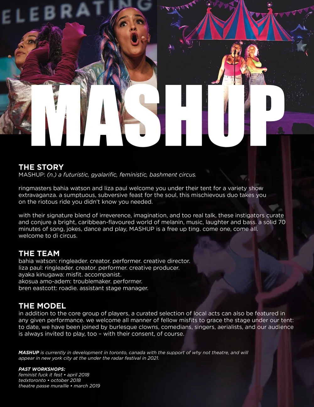 “mashup is a feminist bashment circus. fresh, fun, full of island vibes and vaudeville strange,